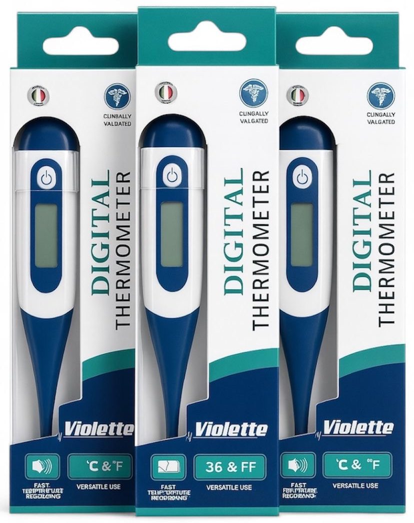 The Violette Digital Thermometer is designed to provide fast, accurate, and reliable body temperature measurements for everyday health monitoring. With a modern, mercury-free design and clinically approved performance, it offers a safe and convenient solution for both home users and healthcare professionals